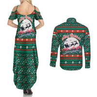 Bulgaria Christmas Couples Matching Summer Maxi Dress and Long Sleeve Button Shirt with Green-Red Theme, Golden Lion, and Santa Sleigh Motif TS04