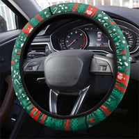 Bulgaria Christmas Steering Wheel Cover with Green-Red Theme, Golden Lion, and Santa Sleigh Motif TS04