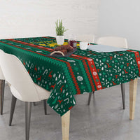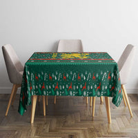 Bulgaria Christmas Tablecloth with Green-Red Theme, Golden Lion, and Santa Sleigh Motif TS04