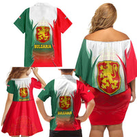 Bulgaria National Crest Family Matching Off Shoulder Short Dress and Hawaiian Shirt with Tricolor Design and Folk Cuff Pattern