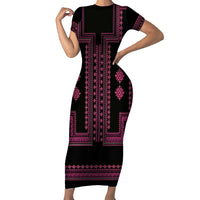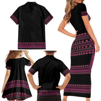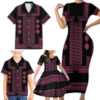 Bulgaria Traditional Pattern Pink Family Matching Short Sleeve Bodycon Dress and Hawaiian Shirt Balkan Culture LT01