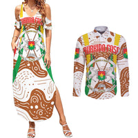 Burkina Faso Couples Matching Summer Maxi Dress and Long Sleeve Button Shirt with Brown White Yellow Abstract Design