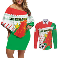 Burkina Faso Football Couples Matching Off Shoulder Short Dress and Long Sleeve Button Shirt Go Les Etalons
