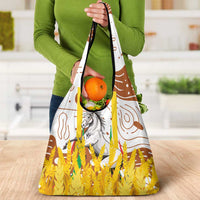 Burkina Faso Grocery Bag with Brown White Yellow Abstract Design