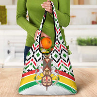 Burkina Faso Grocery Bag with Red Green Black Geometric Design