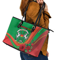 Burkina Faso Independence Day Leather Tote Bag Coat Of Arms With Rose