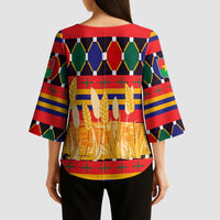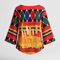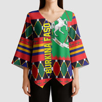 Add a chic touch to your wardrobe with the Burkina Faso Kimono Sleeve Blouse with Red Green Blue Geometric from Wonder Print Shop. Designed for versatility, this V-neck blouse features flowing kimono-style sleeves and a relaxed fit — perfect for both casual and dressy occasions. Crafted with premium polyester fabric, it offers a soft, lightweight feel for all-day comfort.