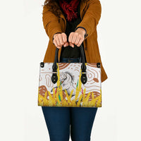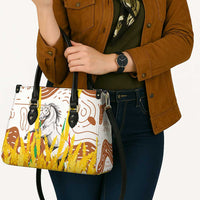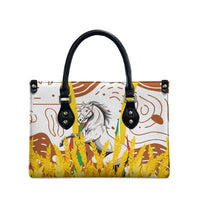 Elevate your everyday with timeless style – add the Burkina Faso Leather Bag with Brown White Yellow Abstract Design to your wardrobe today and experience the Wonder Print Shop difference.