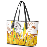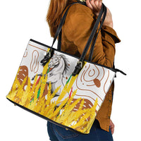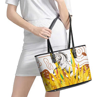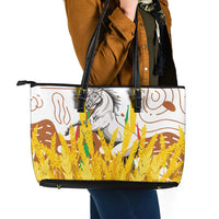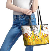 Burkina Faso Leather Tote Bag with Brown White Yellow Abstract Design
