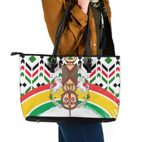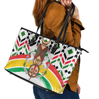 Burkina Faso Leather Tote Bag with Red Green Black Geometric Design