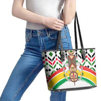 Burkina Faso Leather Tote Bag with Red Green Black Geometric Design TS04