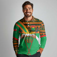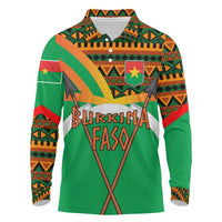 Burkina Faso Long Sleeve Polo Shirt with Green Tribal Pattern Design and National Flag Motif