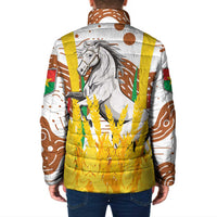 Ready to upgrade your cold-weather wardrobe? Get the Burkina Faso Padded Jacket with Brown White Yellow Abstract Design by Wonder Print Shop now and enjoy reliable warmth with everyday style.