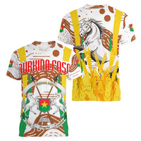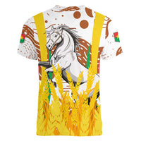 Burkina Faso Women V-Neck T-Shirt with Brown White Yellow Abstract Design TS04