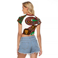 Burundi Lion Tribal Pattern Raglan Cropped T Shirt with National Motto Unité Travail Progrès TS04