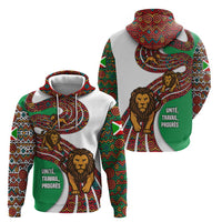 Burundi Lion Tribal Pattern Zip Hoodie with National Motto Unité Travail Progrès