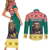Cameroon Christmas Couples Matching Short Sleeve Bodycon Dress and Long Sleeve Button Shirt Lion Santa Joyeux Noel