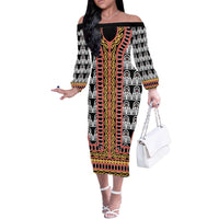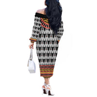 Cameroon Toghu Traditional Pattern Off The Shoulder Long Sleeve Dress