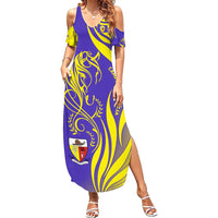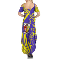 Campione dItalia Family Matching Summer Maxi Dress and Hawaiian Shirt with Yellow Horse Graphic and Purple Flame Crest TS04