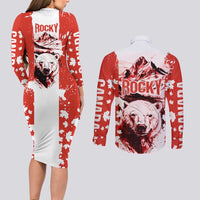 Canada Bear Couples Matching Long Sleeve Bodycon Dress and Long Sleeve Button Shirt with Maple Leaf and Rocky Mountain Design TS04