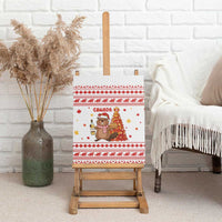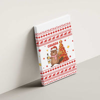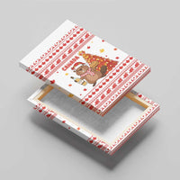 Canada Christmas Canvas Wall Art with Beaver Maple Tree Ice Wine Pie and Red White Knit Pattern Design