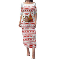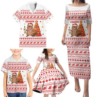 Canada Christmas Family Matching Puletasi and Hawaiian Shirt with Beaver Maple Tree Ice Wine Pie and Red White Knit Pattern Design TS04