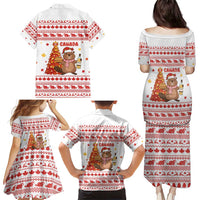 Canada Christmas Family Matching Puletasi and Hawaiian Shirt with Beaver Maple Tree Ice Wine Pie and Red White Knit Pattern Design