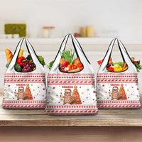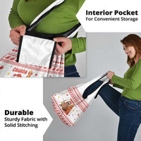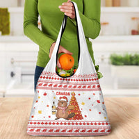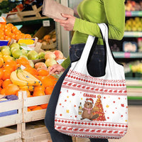 Canada Christmas Grocery Bag with Beaver Maple Tree Ice Wine Pie and Red White Knit Pattern Design