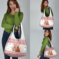 Canada Christmas Grocery Bag with Beaver Maple Tree Ice Wine Pie and Red White Knit Pattern Design TS04