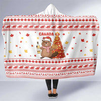 Canada Christmas Hooded Blanket with Beaver Maple Tree Ice Wine Pie and Red White Knit Pattern Design