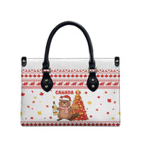 Elevate your everyday with timeless style – add the Canada Christmas Leather Bag with Beaver Maple Tree Ice Wine Pie and Red White Knit Pattern Design to your wardrobe today and experience the Wonder Print Shop difference.