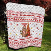 Canada Christmas Quilt with Beaver Maple Tree Ice Wine Pie and Red White Knit Pattern Design