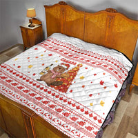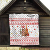 Canada Christmas Quilt with Beaver Maple Tree Ice Wine Pie and Red White Knit Pattern Design TS04