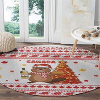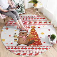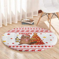 Canada Christmas Round Carpet with Beaver Maple Tree Ice Wine Pie and Red White Knit Pattern Design