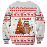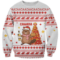 Canada Christmas Sweatshirt with Beaver Maple Tree Ice Wine Pie and Red White Knit Pattern Design