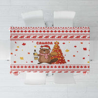 Canada Christmas Tablecloth with Beaver Maple Tree Ice Wine Pie and Red White Knit Pattern Design