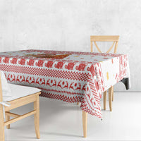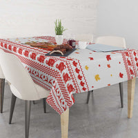 Canada Christmas Tablecloth with Beaver Maple Tree Ice Wine Pie and Red White Knit Pattern Design TS04