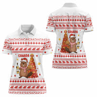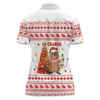 Canada Christmas Women Polo Shirt with Beaver Maple Tree Ice Wine Pie and Red White Knit Pattern Design