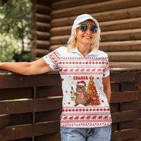 Canada Christmas Women Polo Shirt with Beaver Maple Tree Ice Wine Pie and Red White Knit Pattern Design TS04