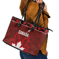 Canadian Rugby Leather Tote Bag Maple Leaves Sporty Art Style Red Color LT03