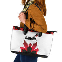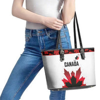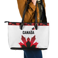 Canadian Rugby Leather Tote Bag Maple Leaves Sporty Art Style White Color LT03