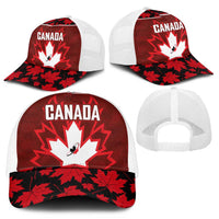 Canadian Rugby Mesh Trucker Cap Maple Leaves Sporty Art Style Red Color