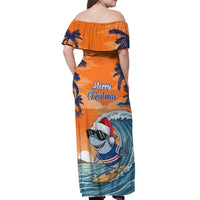 Cape Verde Christmas Off Shoulder Maxi Dress Shark Surfing Holiday Beach Style