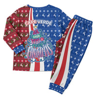 Discover the Cape Verde Christmas Pajama Set with Red and Blue Festive Pattern Christmas Tree and National Emblem Motif from Wonder Print Shop, designed for effortless comfort and everyday relaxation. Made with premium Sanded Milk Silk 200g fabric, this pajama set is lightweight, soft, and breathable—perfect for cozy nights or laid-back mornings.