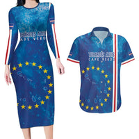 Cape Verde Tubaroes Azuis Custom Couples Matching Long Sleeve Bodycon Dress and Hawaiian Shirt Break The Waves LT7