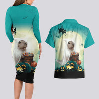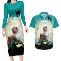 Capy-Boo-Ra Halloween Couples Matching Long Sleeve Bodycon Dress and Hawaiian Shirt Spooky Halloween Night With Pumpkins