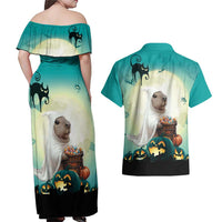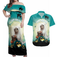 Capy-Boo-Ra Halloween Couples Matching Off Shoulder Maxi Dress and Hawaiian Shirt Spooky Halloween Night With Pumpkins