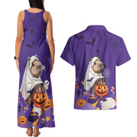 Capy-Boo-Ra Halloween Couples Matching Tank Maxi Dress and Hawaiian Shirt Bats And Pumpkins Funny Style