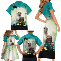Capy-Boo-Ra Halloween Family Matching Short Sleeve Bodycon Dress and Hawaiian Shirt Spooky Halloween Night With Pumpkins