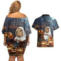 Capy-Boo-Ra Halloween Personalized Couples Matching Off Shoulder Short Dress and Hawaiian Shirt Capybara Funny Spooky Ghost